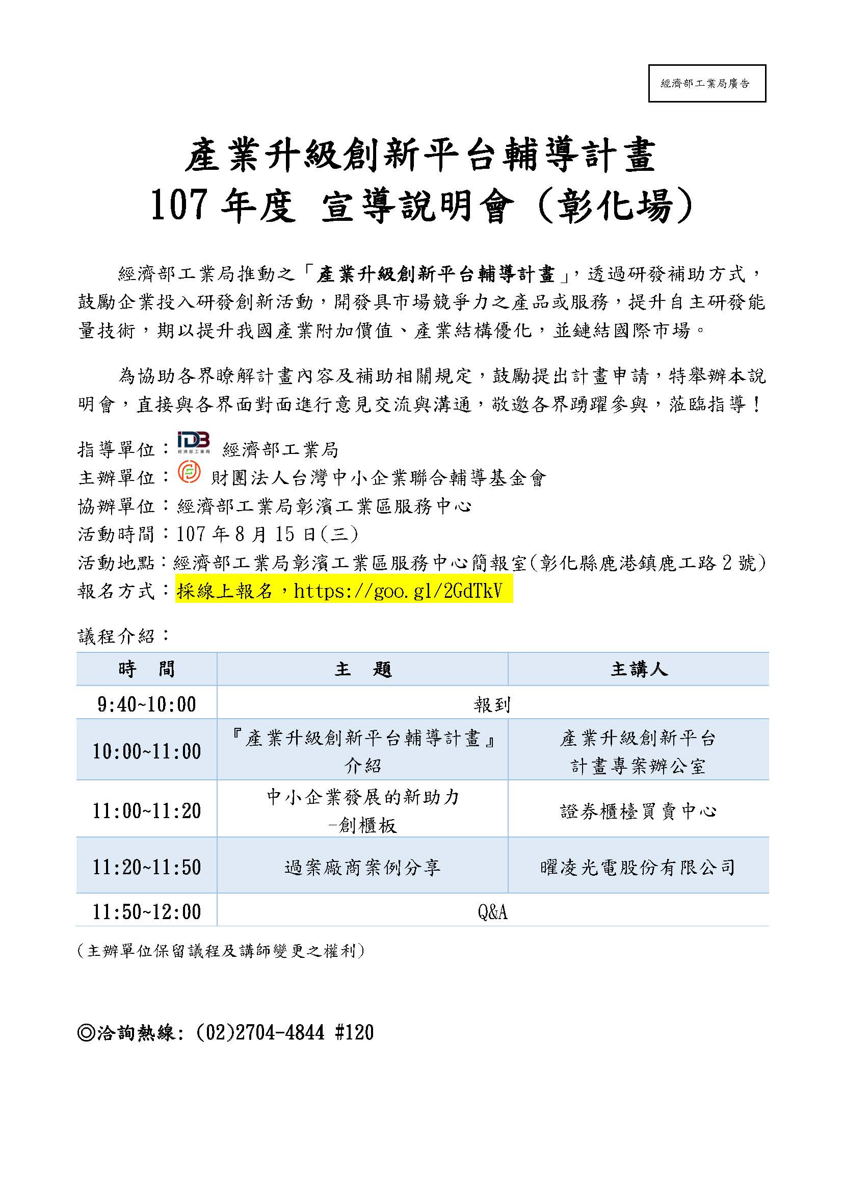 【產業升級創新平台輔導計畫】107年度宣導說明會(彰化場)