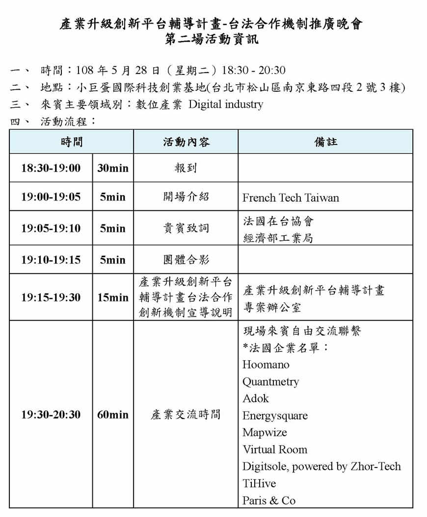 【108年產業升級創新平台輔導計畫「台法合作機制推廣晚會」第二場】